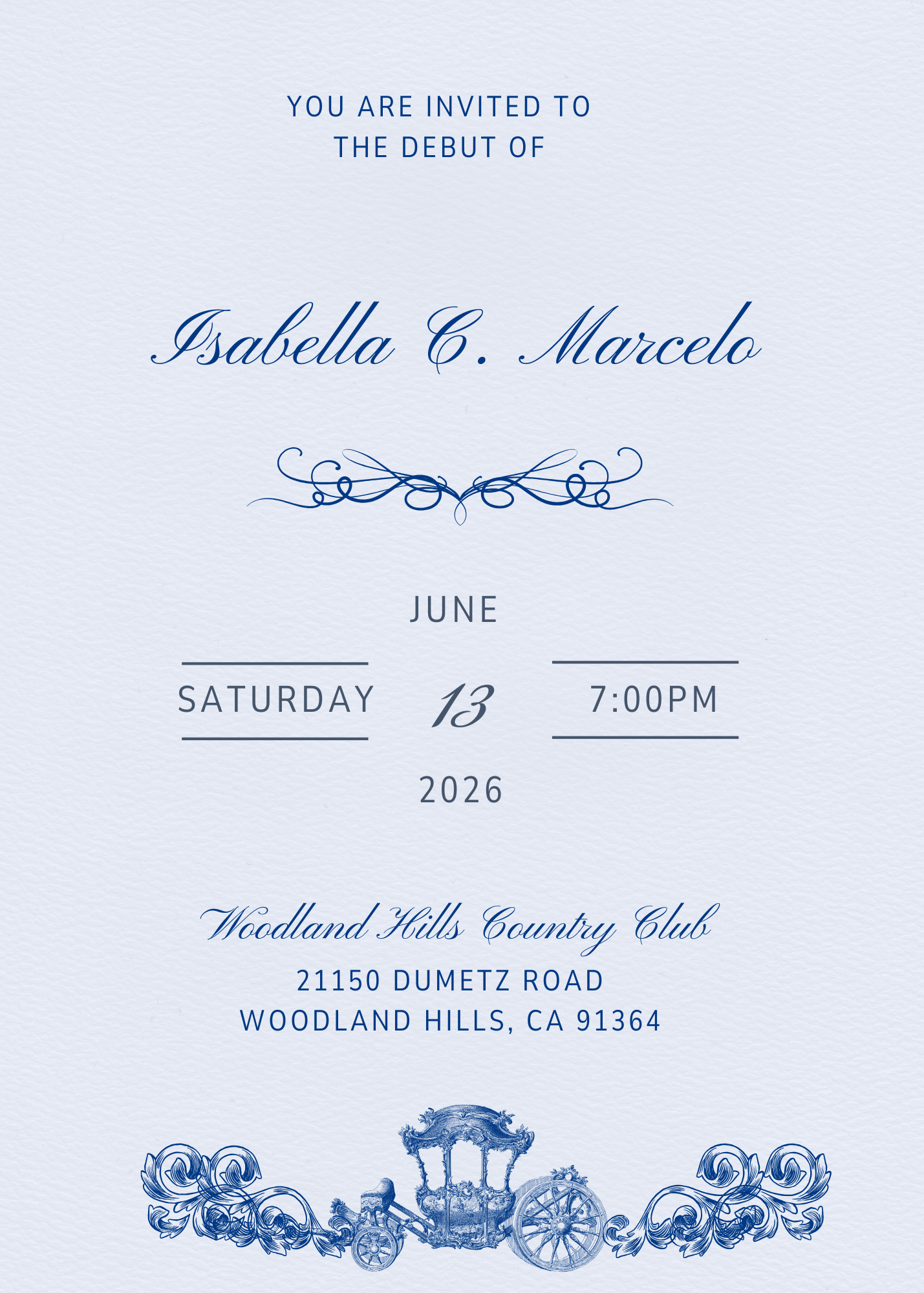 request the honor of your presence at the eighteenth birthday celebration of their daughter, Isabella C. Marcelo.